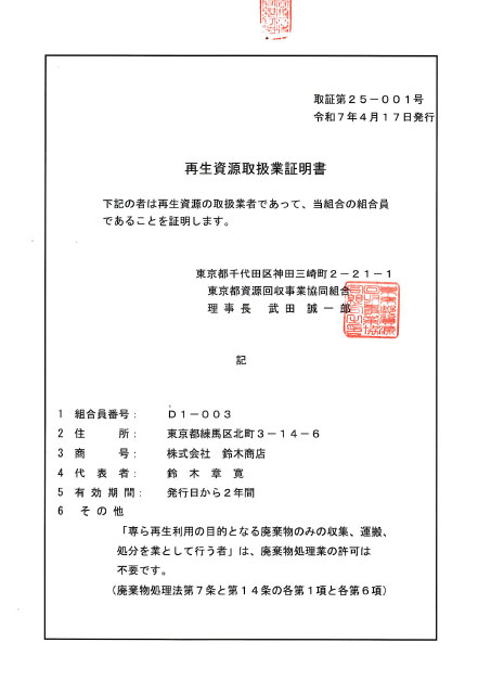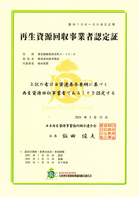鉄・アルミ・銅などの原料が再生されて新しい製品に生まれ変わり、再び市場に還元されて行くことで日本経済の成長の一端を担うことが出来ます。